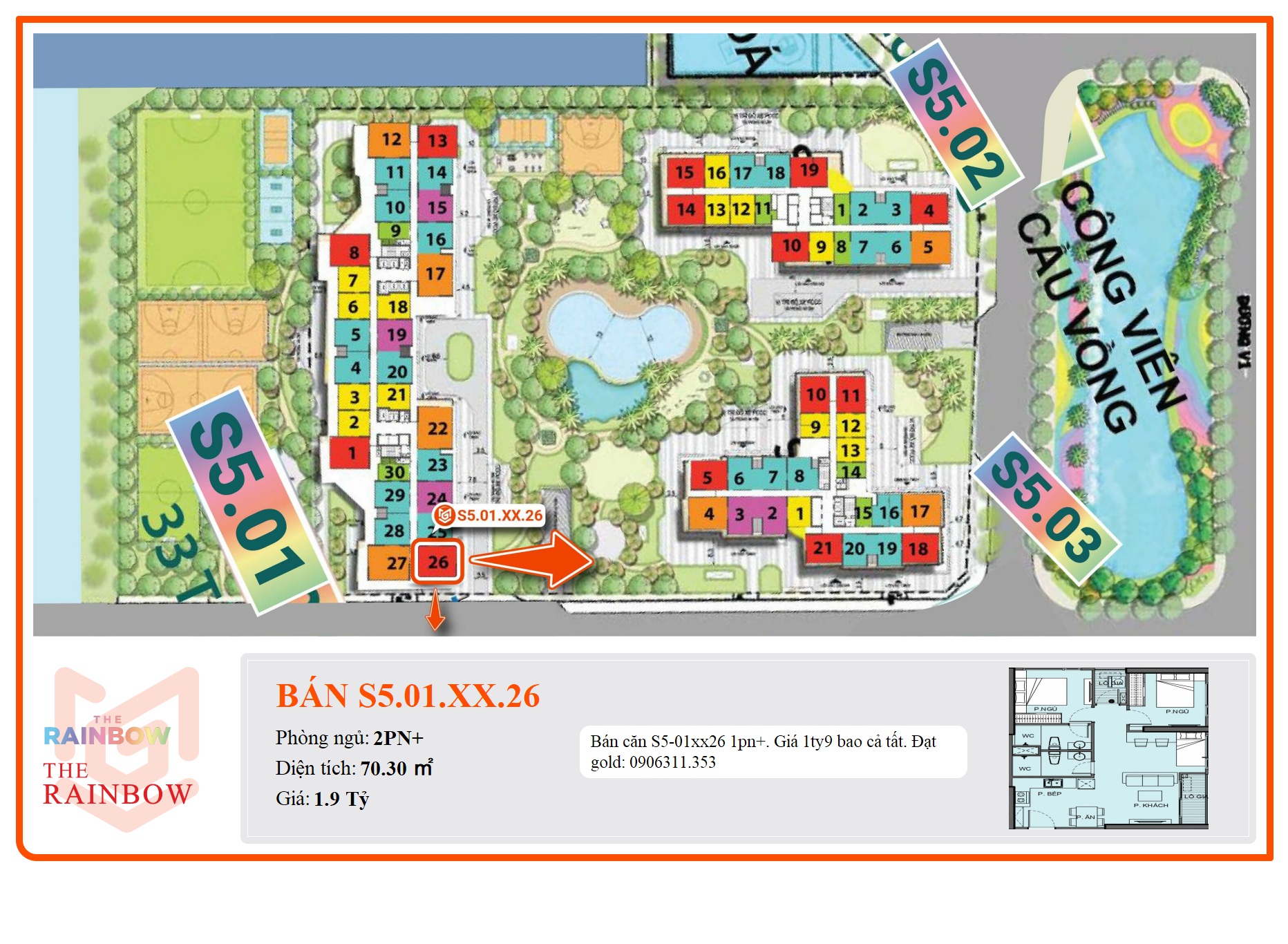 - Phân khu: The Rainbow thuộc KĐT Vinhomes Grand Park