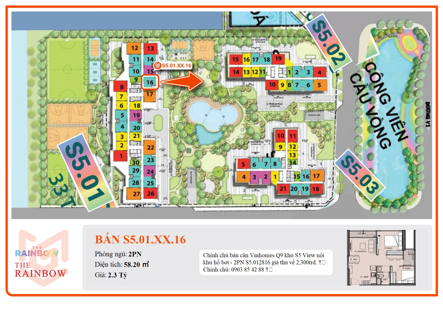 Chính chủ bán căn Vinhomes Q9 khu S5 View nội khu hồ bơi - 2PN S5.012816 giá thu về 2,300trd. ‼️Chính chủ: 0903 85 42 88 ‼️