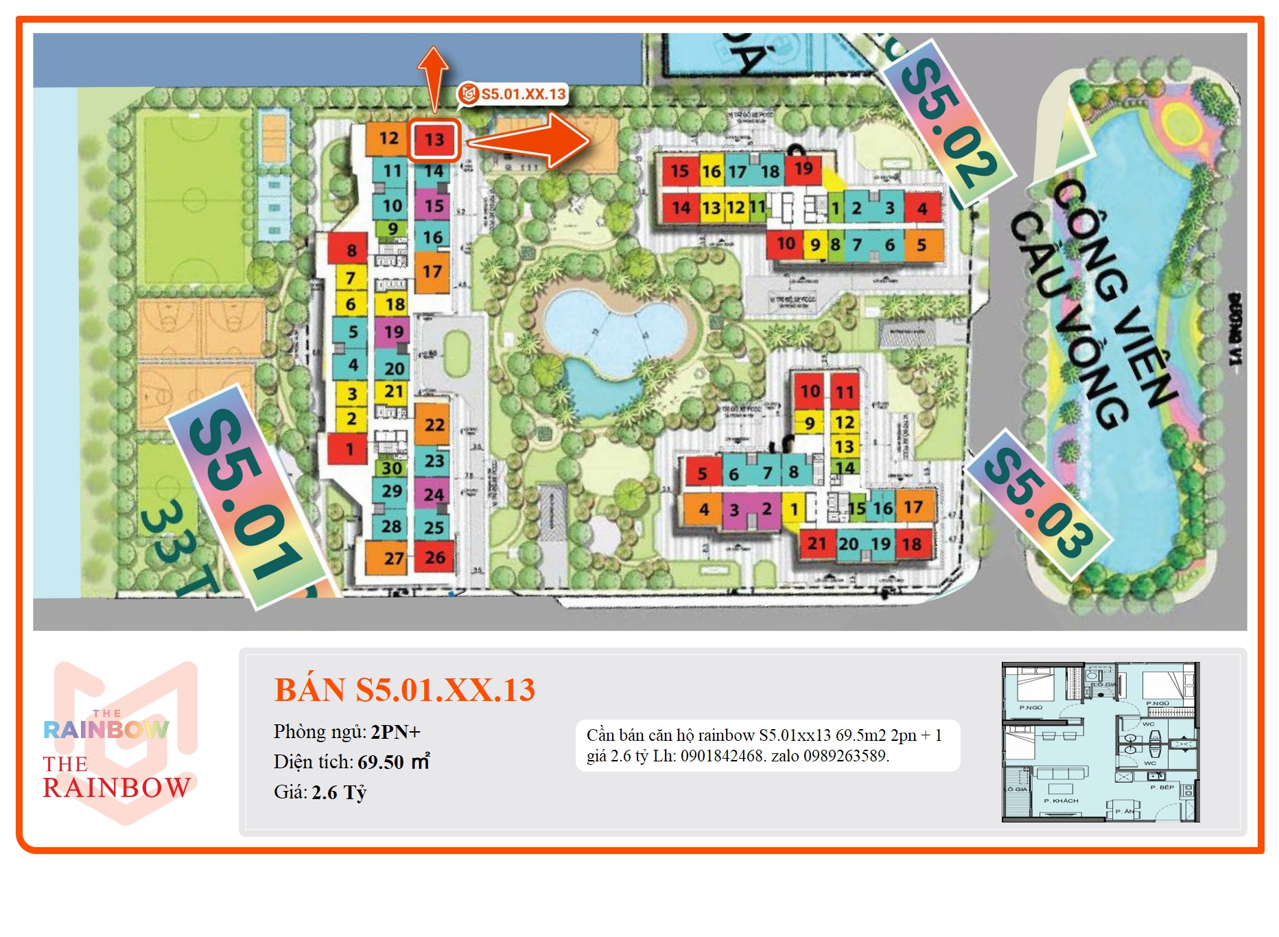 Cần bán căn hộ rainbow S5.01xx13 69.5m2 2pn + 1 giá 2.6 tỷ Lh: 0901842468. zalo 0989263589.