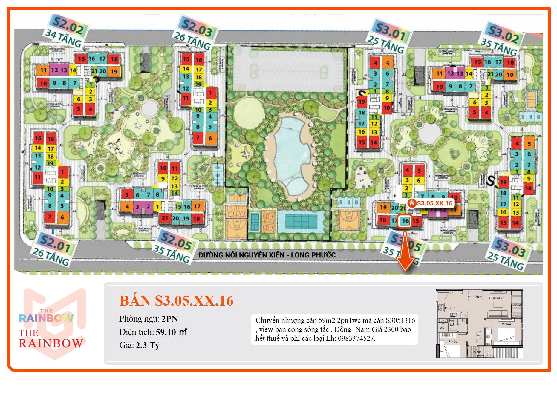 Chuyển nhượng căn 59m2 2pn1wc mã căn S3051316 , view ban công sông tắc , Đông -Nam Giá 2300 bao hết thuế và phí các loại Lh: 0983374527.