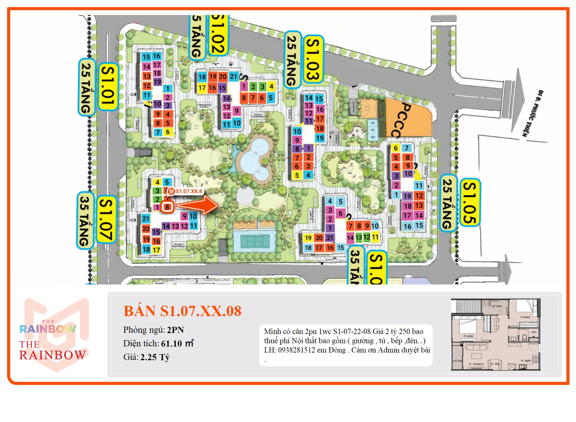 Mình có căn 2pn 1wc S1-07-22-08 Giá 2 tỷ 250 bao thuế phí Nội thất bao gồm ( giường , tủ , bếp ,đèn...) LH: 0938281512 em Đông . Cảm ơn Admin duyệt bài .