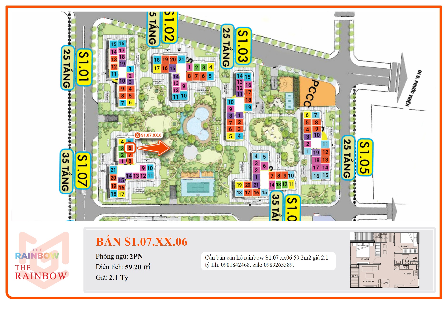 Cần bán căn hộ rainbow S1.07 xx06 59.2m2 giá 2.1 tỷ Lh: 0901842468. zalo 0989263589.