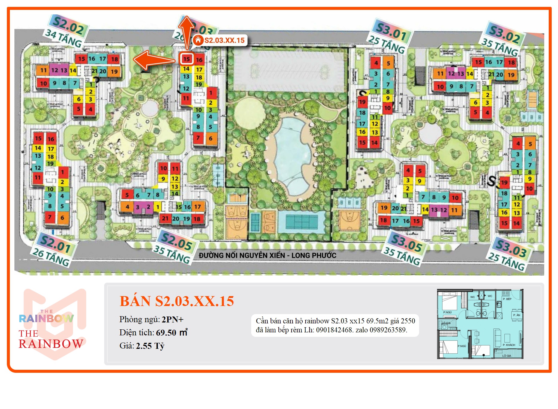 Cần bán căn hộ rainbow S2.03 xx15 69.5m2 giá 2550 đã làm bếp rèm Lh: 0901842468. zalo 0989263589.