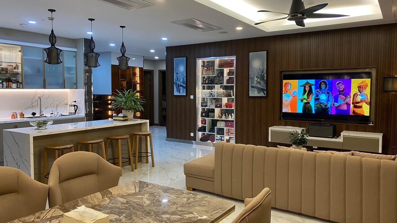 Về không gian căn hộ được thiết kế hiện đại, độc đáo với đầy đủ các nội thất cao cấp được tích hợp. Các căn hộ được thiết kế với nhiều phòng chức năng với diện tích lớn, phù hợp cho gia đình nhiều thành viên. Các phòng ngủ đều thiết kế có khu vực ban công rộng thoáng, tối ưu hóa về ánh sáng và gió tự nhiên.