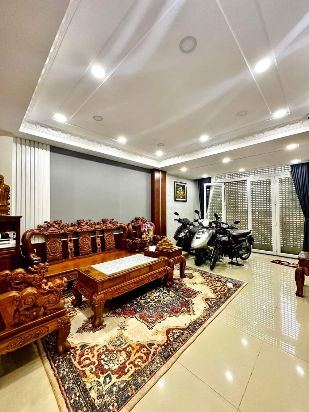- Kết cấu: Trệt + Lửng + 2 Lầu + Sân thượng. 4 Phòng ngủ, 4 WC, Phòng Karaoke, Phòng thờ.